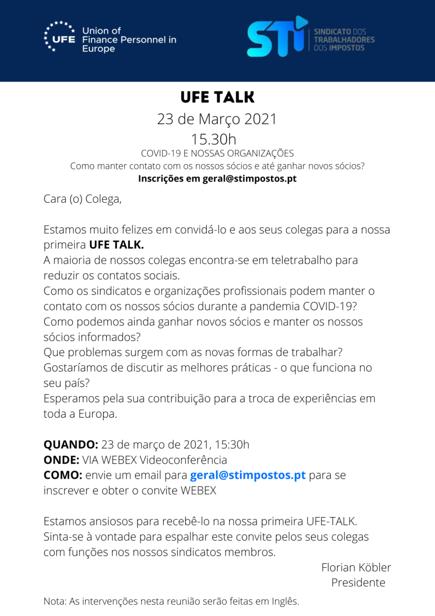 O vídeo desta primeira UFE-TALK está disponível para visionamento na área reservada do site do STI, no menu lateral ACOES DE FORMAÇÃO/EVENTOS.