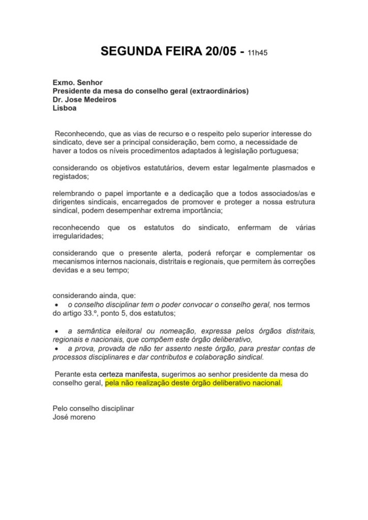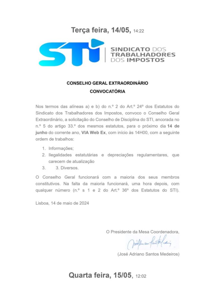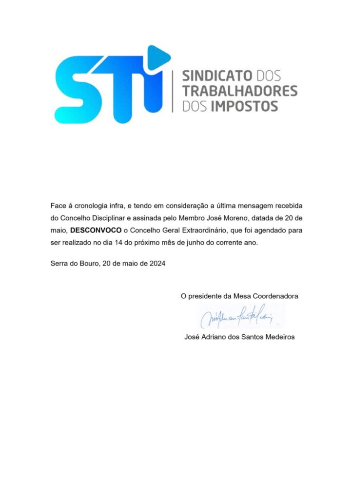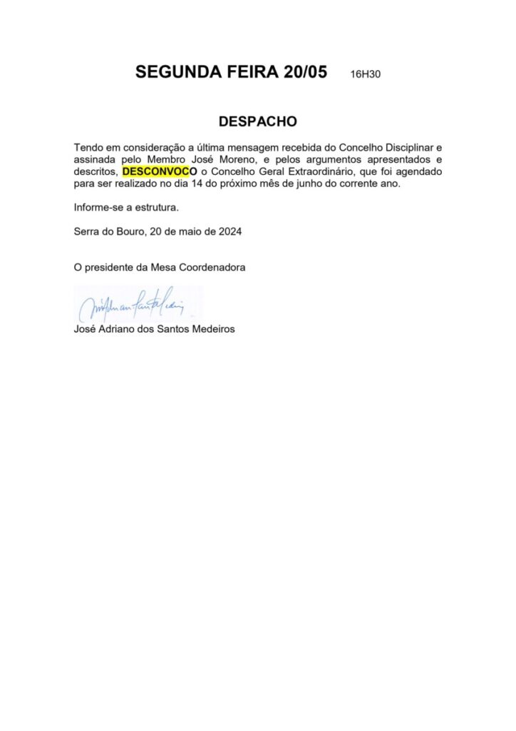 CONSELHO GERAL EXTRAORDINÁRIO – DESCONVOCAÇÃO