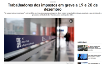 JORNAL DE NEGÓCIOS | Trabalhadores dos impostos em greve a 19 e 20 de dezembro