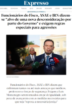 Expresso | Funcionários do Fisco, ASAE e IRN dizem-se “alvo de uma nova desconsideração por parte do Governo” e exigem regras especiais para agressões