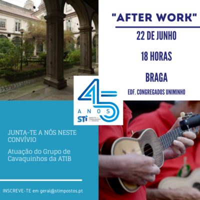 Convívio “After Work” Temos o prazer de convidar todos os sócios para um Convívio “After work”, a realizar no próximo