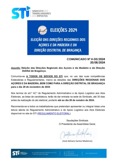 COMUNICADO Nº 2-DD/2026 04/01/2026 ASSUNTO: Eleição da Direção Distrital de Aveiro. A Comissão Eleitoral, comunica a todos os trabalhadores, nos termos
