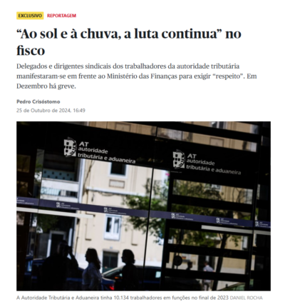 “Ao sol e à chuva, a luta continua” no fisco Delegados e dirigentes sindicais dos trabalhadores da autoridade tributária manifestaram-se
