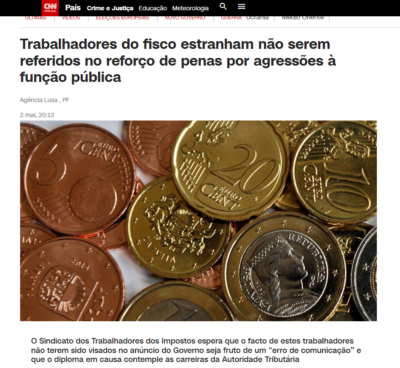 CNN | Trabalhadores do fisco estranham não serem referidos no reforço de penas por agressões à função pública