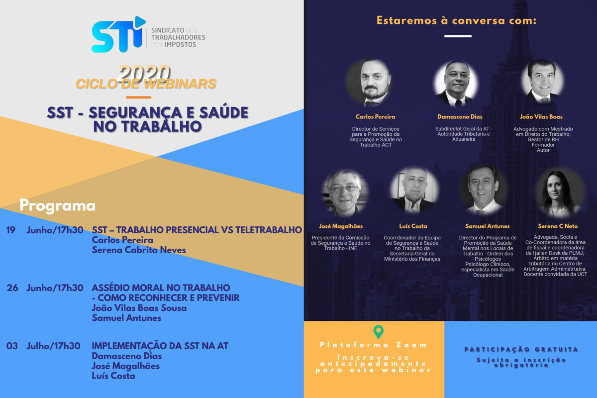 Após o sucesso do primeiro ciclo de webinars, o Sindicato dos Trabalhadores dos Impostos (STI), dará continuidade aos Ciclos de Webinars STI, iniciando, no dia 19 de Junho, o próximo ciclo de três webinars, às 6ªas feiras, pelas 17:30h.