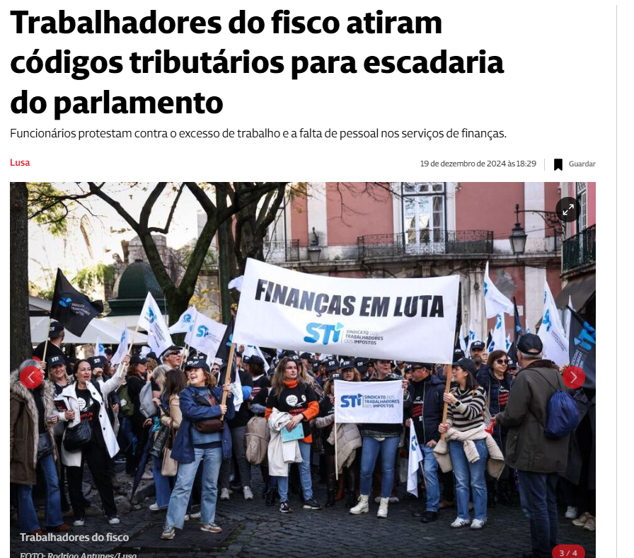 Trabalhadores do fisco atiraram dezenas de códigos tributários para as escadarias do parlamento num ato simbólico para protestar contra o excesso de trabalho e a falta de pessoal nos serviços de finanças, durante a manifestação que juntou milhares em Lisboa.