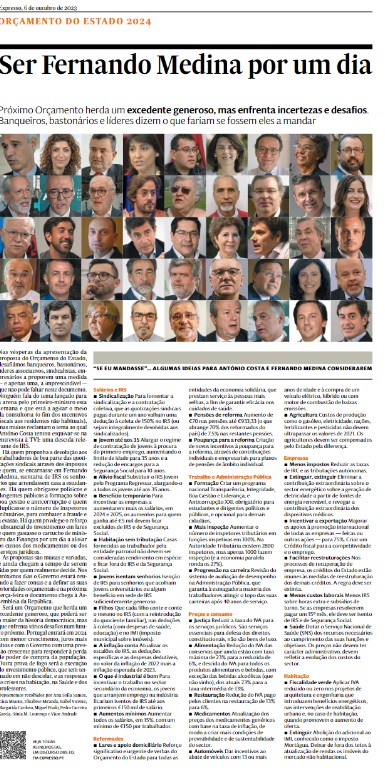 “Actualizar os escalões do IRS, as deduções específicas e as despesas dedutíveis, no valor da inflação de 2022 mais a inflação esperada de 2023. Sensivelmente 13%.”