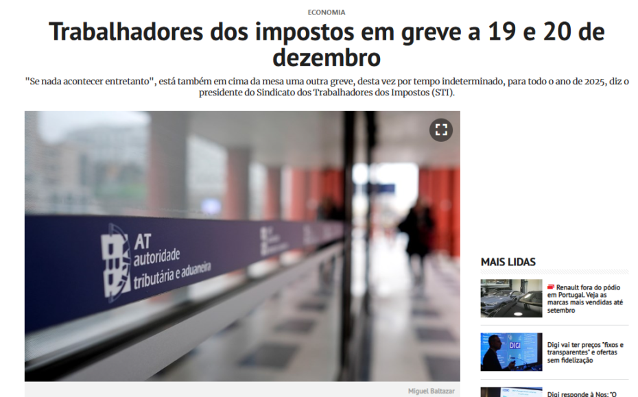 “Para resumir, a AT bateu no fundo”, afirma o presidente do STI, avisando que a greve de 19 e 20 de dezembro — com manifestação em Lisboa no dia 19 — será “apenas a primeira” de várias, se entretanto nada mudar.