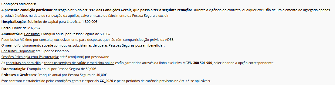- Estar abrangida por outro contrato de seguro suportado pela entidade patronal;