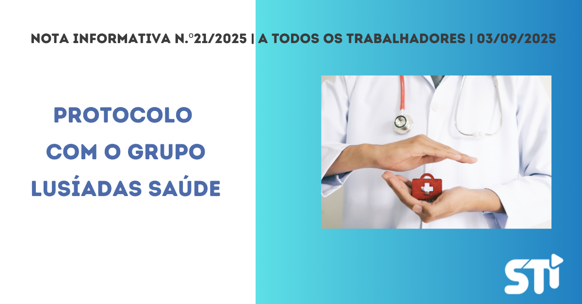 O STI estabeleceu com o Grupo Lusíadas Saúde um protocolo que permite aos seus Sócios, cônjuges e descendentes diretos, o benefício de acesso a cuidados de saúde, em condições vantajosas, nas Unidades de Saúde do Grupo Lusíadas Saúde.