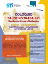 O STI – Sindicato dos Trabalhadores dos Impostos realizou, com a colaboração da UNIVERSIDADE AUTÓNOMA DE LISBOA, a 5ª edição do Colóquio alusivo ao tema “Saúde no Trabalho – Gestão do Stress e Motivação”, no dia 10 DE MARÇO DE 2017, no Auditório do Metro de Lisboa.