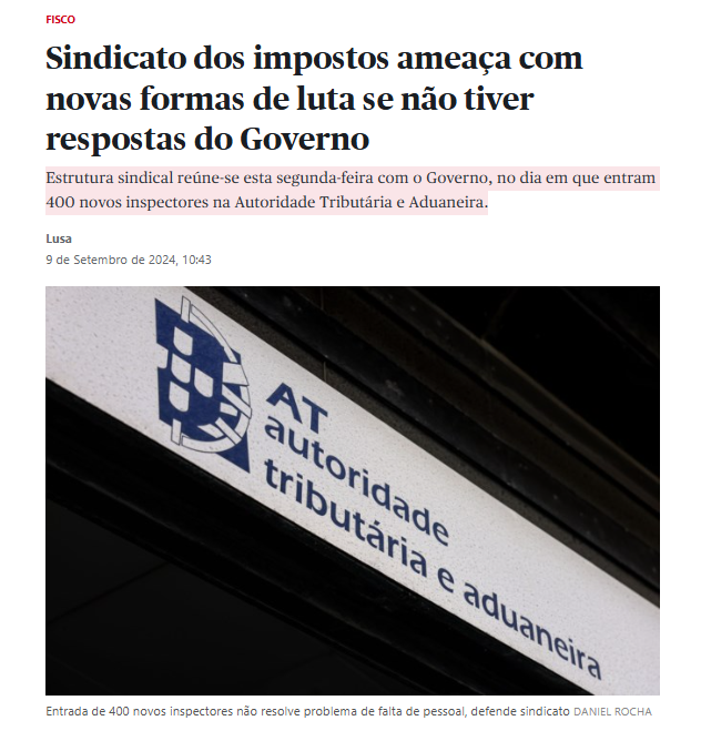 O STI aproveita também para saudar a entrada de cerca de 400 novos inspectores da AT, que hoje iniciam funções, mas acentua que isso não vai resolver do “problema urgente” da falta de pessoal nos serviços locais.