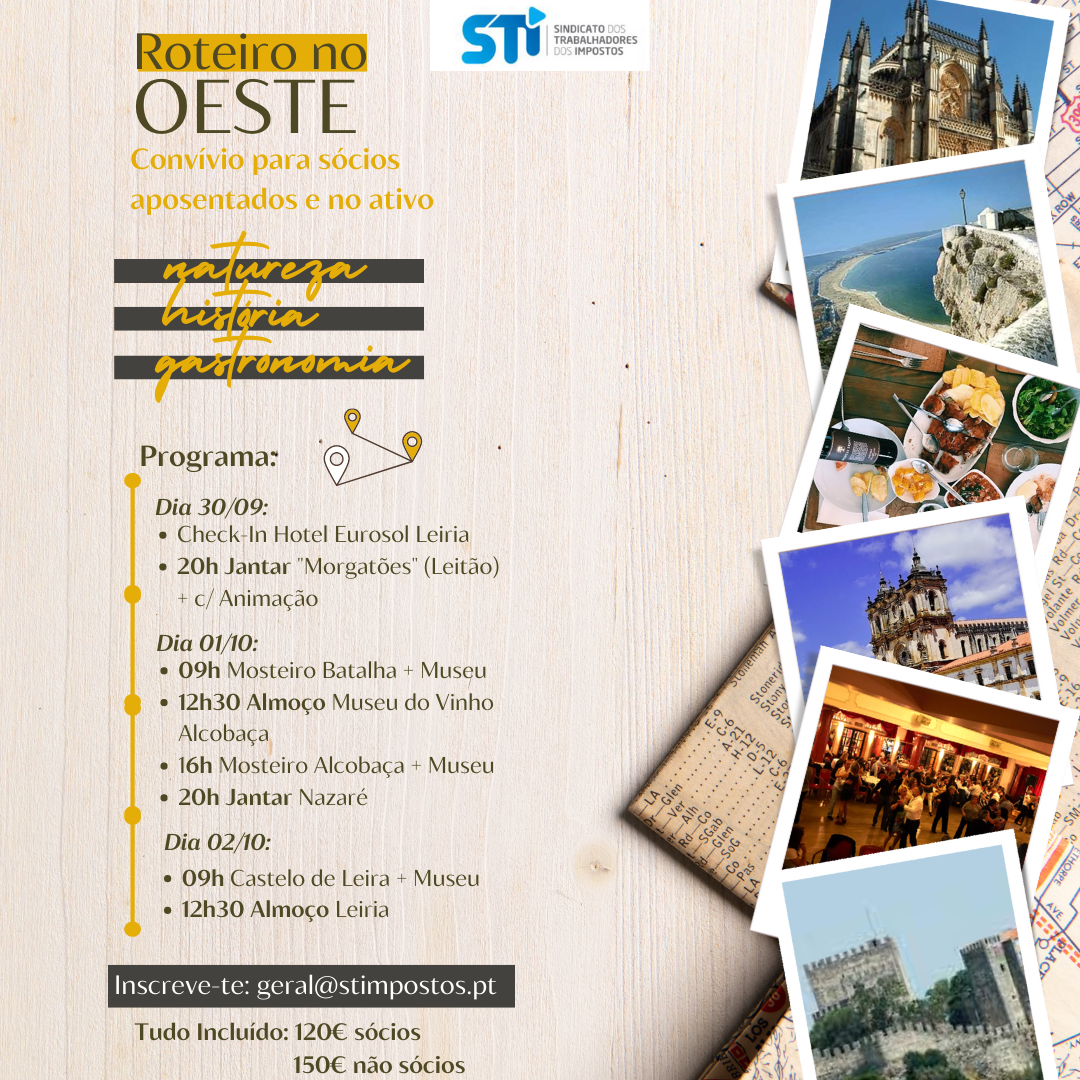 Integrado nas comemorações do 45.º aniversário do STI, a Direção Nacional vai realizar um Convívio para sócios aposentados e no ativo, extensível aos familiares, nos dias 30/09 a 02 de outubro, com vista a proporcionar momentos de convívio, animação e conhecimento!