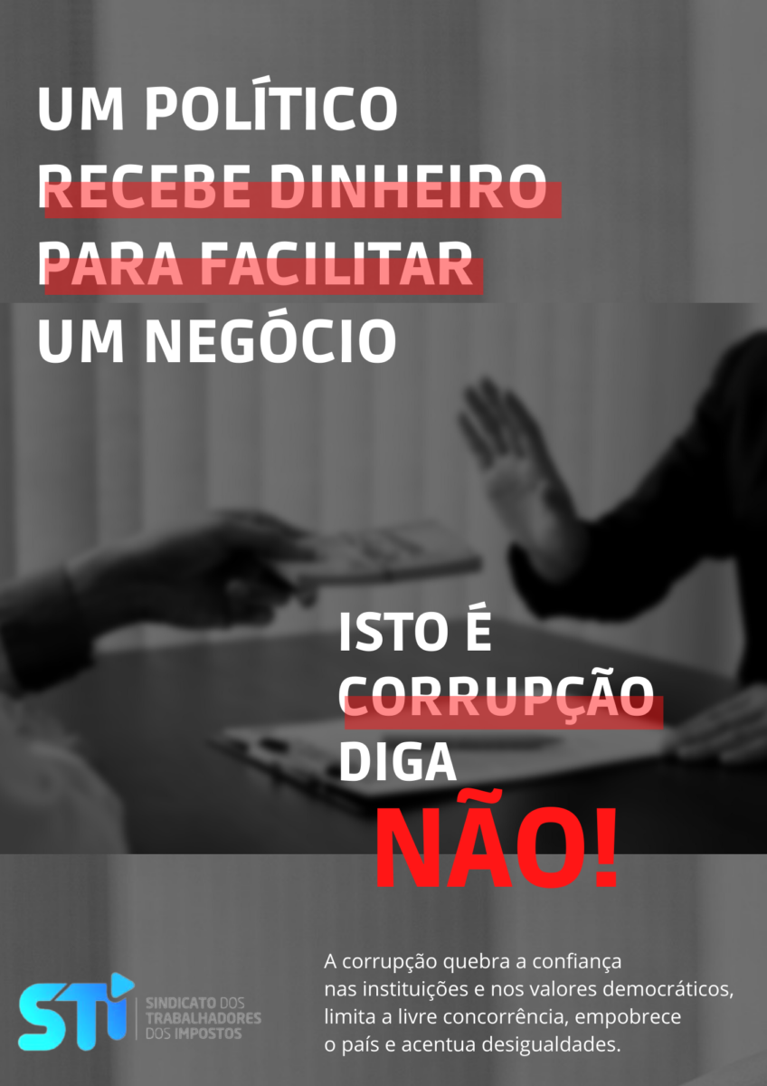 O Sindicato dos Trabalhadores dos Impostos (STI) condena a campanha anticorrupção em curso, por veicular mensagens de acusação implícita generalizada aos funcionários públicos, causando a indignação de trabalhadores da Autoridade Tributária e Aduaneira (AT).