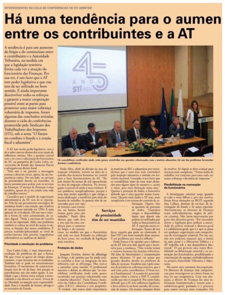 A tendência é para um aumento do litígio e do contencioso entre o contribuinte e a Autoridade Tributária, na medida em que a legislação restritiva limita cada vez a atuação do funcionário das Finanças. Por sua vez, é um facto que a AT tem poder legislativo e que este tem de ser utilizado no bom sentido. É ainda importante desenvolver todos os esforços e garantir a maior cooperação possível entre as partes para promover uma maior cobrança voluntária de impostos, foram algumas das conclusões retiradas durante o ciclo de conferências promovido pelo Sindicato dos Trabalhadores dos Impostos (STI), sob o tema “O futuro no combate à fraude e à evasão fiscal e aduaneira”.