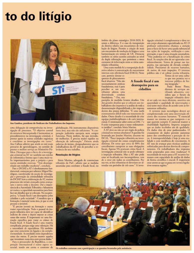 Sónia Martins, advogada de contencioso tributário da PwC, admite que as medidas assumidas para combater a fraude fiscal, no âmbito do plano estratégico 2018-2020, fizeram a diferença. É o caso da transposição da diretiva relativa aos mecanismos de resolução de litígios. Permite a criação de mais um mecanismo de resolução de litígios e uma harmonização em termos de UE. Destacou também os vários acordos assinados ao nível da dupla tributação, que permitem a troca constante de informação entre as várias autoridades tributárias.